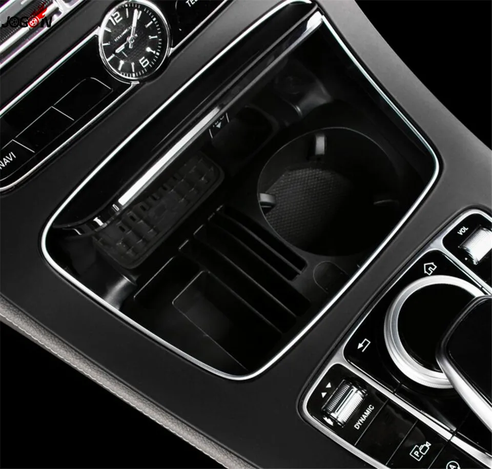 1pc Black Central Water Cup Phone Holder Box Storage For Mercedes Benz E class W213 2016 2017 E200